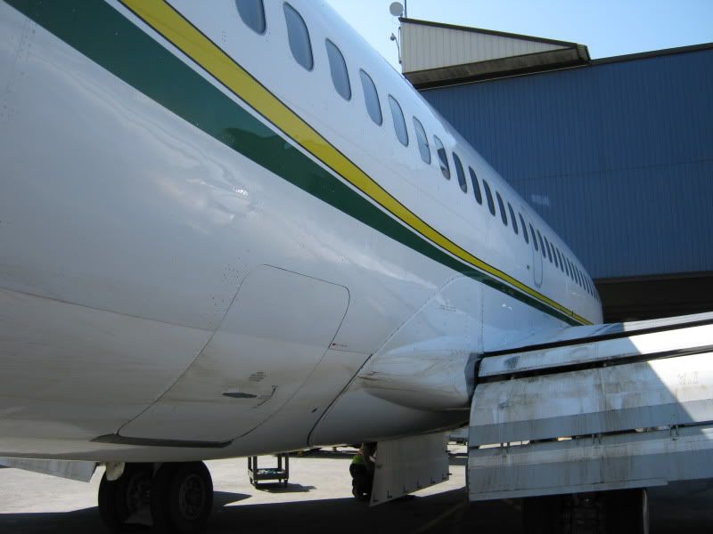 Dirty from landing on gravel runways: