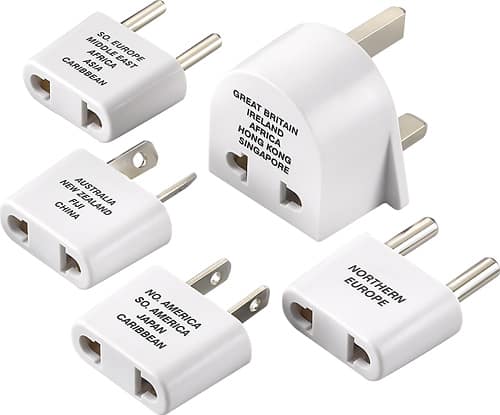 The adaptor is 3" x 1-1/2" x 1-3/4" and includes plugs for Europe, Asia, Japan, Australia (or the cockpit), and the U.S. It includes a surge protector and power light and can be plugged into any 110 or 220 outlet I've ever encountered. But, it does not include a USB plug.
