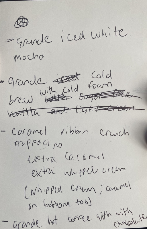 ”Caramel ribbon crunch frappuccino Extra caramel, extra whipped cream (whipped cream & caramel on the bottom too)”