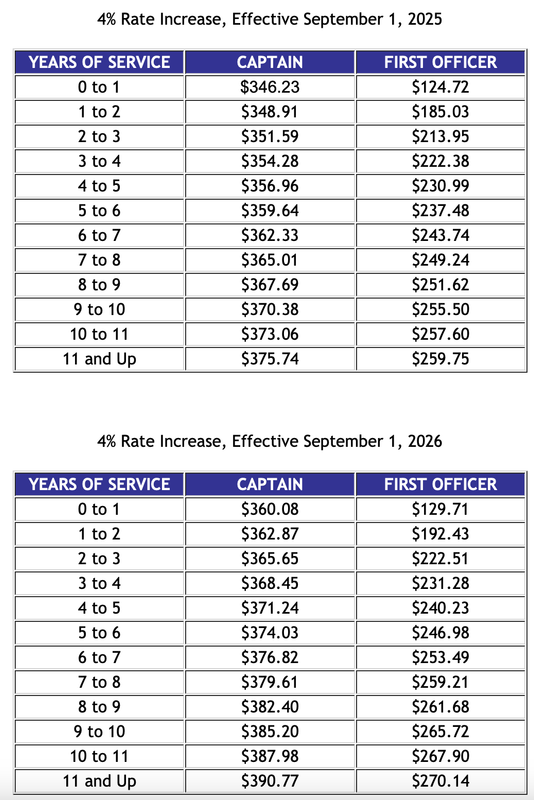 The union’s proposal does have higher rates than these. God willing we’ll receive them. This company can afford to pay them. They are making the fight hard and some of our own pilot group doesn’t believe in our ability to reach parity. But we will if we fight for it. Every contract in the history of ALPA has taken sacrifice and determination. We can do it.