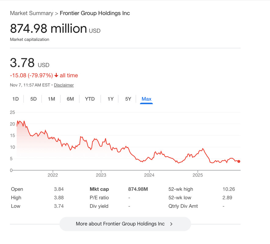 Frontier has lost almost 200m this year. Negative 8% margins when Barry was forecasting Double digit margins.