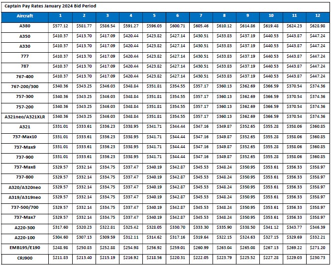 these 2024 rates match DL CA rates to the penny for every aircraft currently in operation.