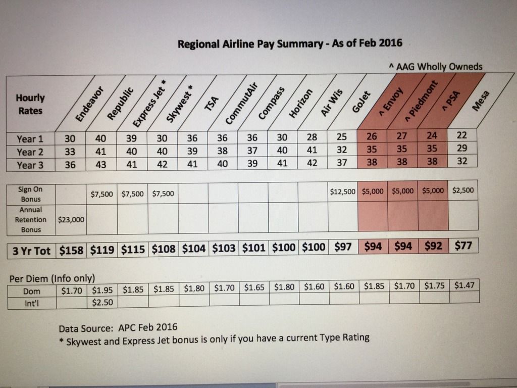 This is APC pay rates and bonuses pulled into one place for convenience. For hourly rates, if there were different rates for different A/C Types, a blended rate was used to keep it simple. Same thing for bonuses.