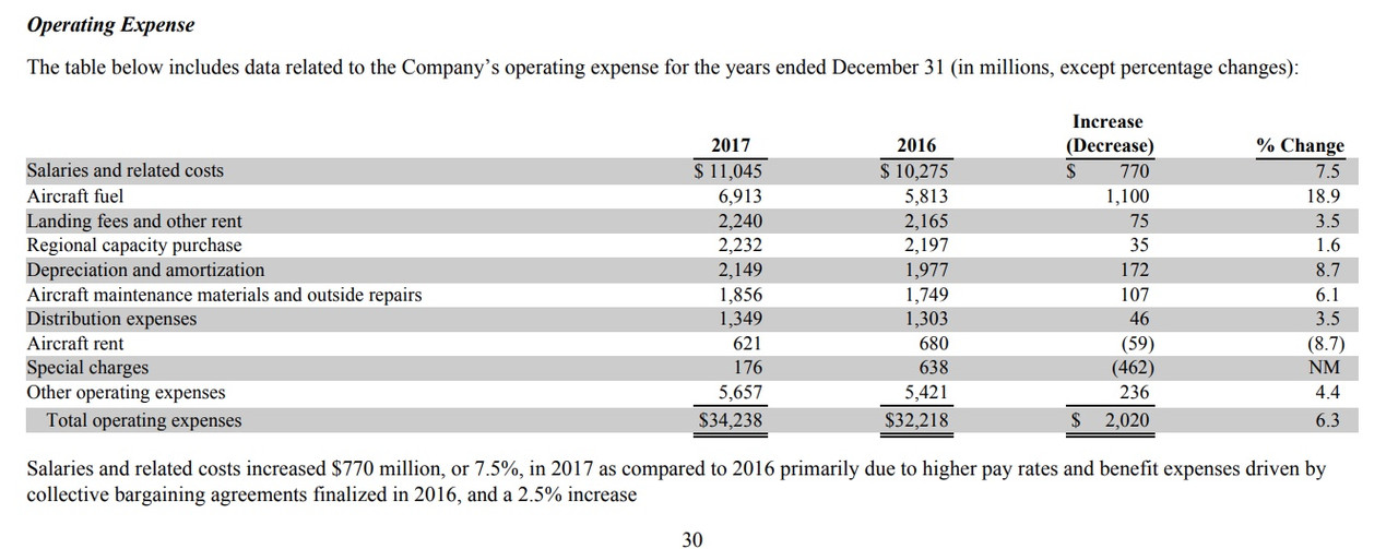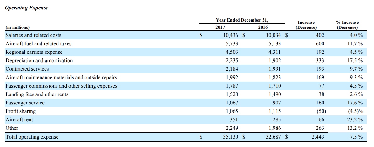 Here are the basic expense statements from the 2017 annual reports. Notice salaries and rents/fees. (Delta is in blue.) Assuming for the moment the two companies are accounting for the same item in the same way, it looks to me like we have over a $1 billion dollar structural difference in expense that we will never overcome.