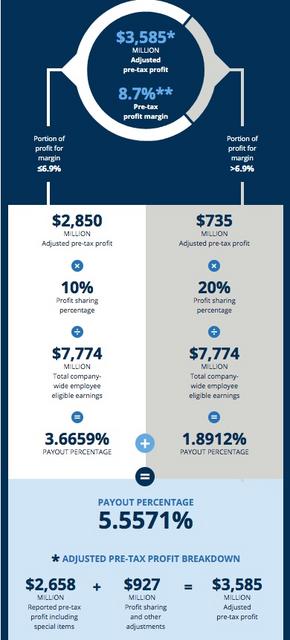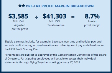 Also interesting to note that Delta's PS for 2017 was based on revenues of $44 billion and profit of $5.5 billion and oddly enough their payroll number is lower so all in all it makes for a much bigger payout, but not because of the mechanism behind the calculation as they get 10% of the first $2.5 billion which is darn close to the $2.7 billion in our 2017 calculation. It's all about the roughly $2 billion in additional profit they have.