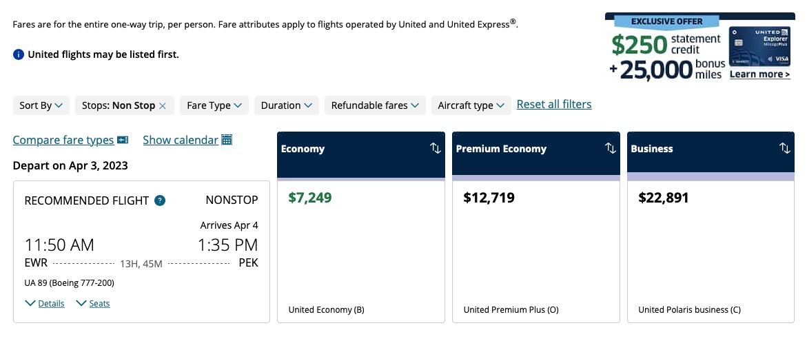 Well, I certainly wouldn't bet against your thought, but on the other hand EWR to HKG over Russia and direct is about 8000 miles and we used to do that daily, and EWR to PEK or PVG avoiding Russian airspace is less than 7800 miles so not out of the range of feasibility. As I said several times before the fact that tickets are on sale has not been a good indicator, but at $7k per ticket I'm thinking' it could actually make money, hah! Certainly a LOT more than I'd be willing to pay to go to China - that's for sure.