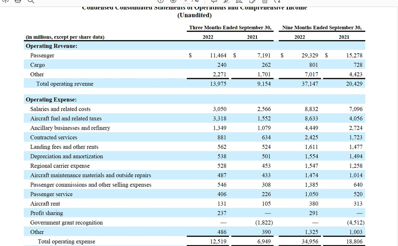 Profit Sharing is a topic near and dear to my heart, and I have posted on the topic in great length here. Your comment on finagling costs inspired me to want to respond, but in the course of researching the topic of costs at the two companies I came across an item I will be researching in greater detail once the annual report comes out for both companies. Suffice to say my interest has been drawn to Delta's ownership of a refinery. In years past this line item was minor or even negative, but at first blush it appears to have been the primary driver of the difference in profit for 2022 between UAL and DAL. I will hold final judgment until I can take a deep dive into the numbers, but the latest 10Q shows Delta with $5 billion in additional income from "other" and when you go down to the notes that "other" is largely revenue from the refinery operation. Now how much that impacts profit I have no idea yet, but it does make the revenue side of the equation quite different between the two companies.